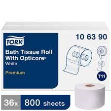 Tork Premium Bath Tissue Roll with OptiCore features patented two-part core technology and offers a unique combination of capacity, waste reduction, and quality. This premium tissue is designed for those customers who demand the maximum in strength, brightness and softness. This tissue is ideal for office buildings, hotels and restaurants.
