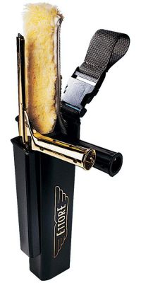A definitive dripless holster puts squeegee, washer and mini-bucket on either hip Detachable, quick-release belt clip (use 2044 tool belt) Durable, heavy duty construction Accepts all brands of squeegees and washers up to 18" Reversible right/left design Shown complete with tools, all items sold separately Dimensions: 4" D x 3 1/4" W x 12" H