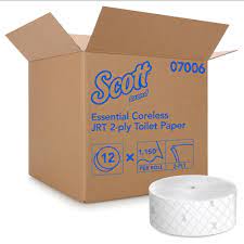 Scott Essential provides reliable balance of efficiency, performance and value. Selecting Scott Essential Jumbo Roll Coreless Toilet Paper is a smart choice for your business. It brings you high capacity and each roll offers 15% more than standard jumbo roll toilet paper brands, so you'll have to order less frequently. It's an economical choice, but thanks to its 2-ply design, it's also soft and durable. Scott's coreless bath tissue (made by Kimberly-Clark) meets EPA guidelines for post-consumer waste and is FSC certified. It's elemental chlorine-free (ECF) and reduces packaging waste with 100% elimination of core waste when compared to cored commercial jumbo rolls. Scott Essential jumbo roll bulk toilet tissue works with manual Coreless Jumbo Roll Tissue dispensers. It's a savvy, economical and efficient choice for your business. The Scott Essential Brand stands out among coreless toilet paper brands for its superior quality; this roll has 2-ply softness. No core means more wholesale toilet tissue on each roll. Each strong industrial roll has 15% more bath tissue than standard industrial jumbo rollsFSC and EcoLogo certified and meets EPA's minimum requirements for post-consumer waste.