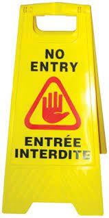 Yellow sign with black and red message attracts immediate attention Bilingual English/French Rugged, durable and portable Folds flat for space saving Dimensions: 12" W x 24" H