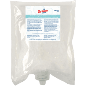 Certainty Antibac Foaming Hand Wash keeps your hands germ-free! This soap is specially formulated to provide a rich lather that gently and effectively cleanses and moiturizes your hands. Use with one of our high quality, contemporary dispenser systems that come in white, black or faux stainless. Fragrance-free and dye-free 1785 hand washes per foam soap cartridge Each pouch contains 1000 ml No-drip pump provided with every refill Enriched with soothing moisturizers