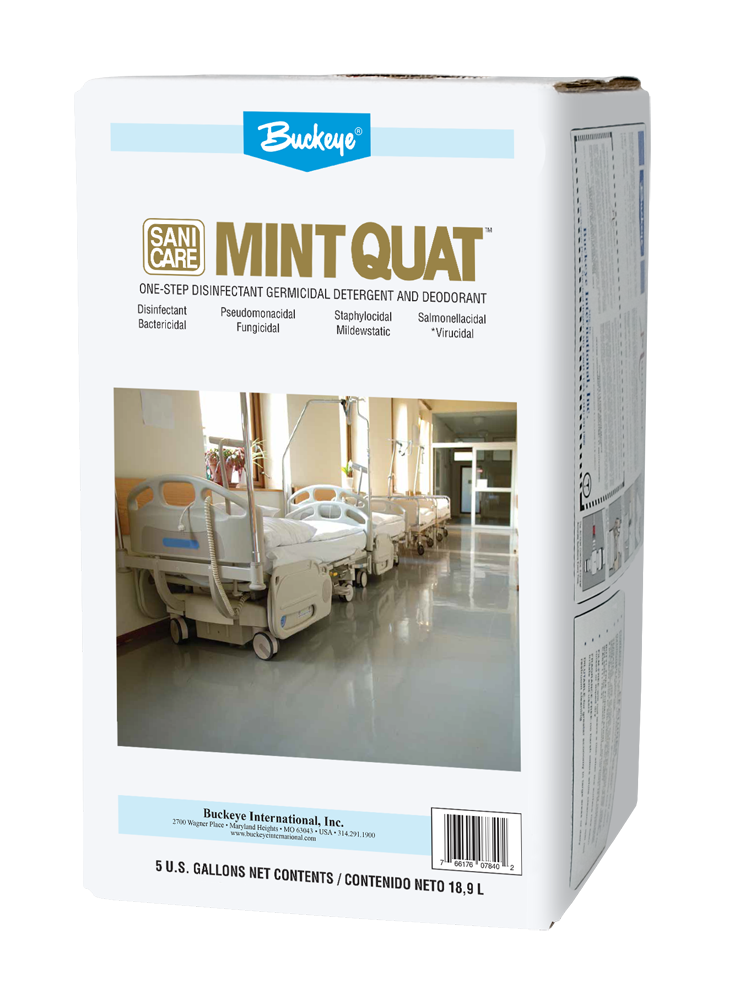 Buckeye Sanicare Mint Quat is a multi-purpose, germicidal cleaner for one-step cleaning, disinfecting and deodorizing on your washable, hard, nonporous surfaces. Mint Quat's no-rinse formula is effective in hard water, and pH neutral for use on floor finishes. Use Pine Quat at 2 oz. per gallon dilution.
