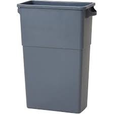 Constructed of durable polyethylene Textured finish outside for attractive, commercial look Polished inside for easy cleaning Convenient ergonomic handles Recessed handgrips moulded into bottom for easy emptying Shown with lids (sold separately) Dimensions: 23" L x 11" W x 30" H Trash bag size: 30" x 38"