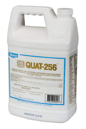 Buckeye Sanicare Quat 256 is a multi-purpose, germicidal detergent for use in hospital, health care and industrial settings at � oz. per gallon of water. Buckeye Sanicare Quat 256 requires no rinsing, and is pH neutral for use on floor finishes. Buckeye Sanicare Quat 256 has: a 1 minute contact time for Human Coronavirus a 2 minute contact time for Influenza Virus Type A a 4 minute contact time for HIV-1 (AIDS) virus