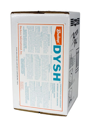 Dysh is a concentrated, biodegradable, liquid detergent for hand washing dishes, glassware, pots, pans and silverware. It is formulated for performance and economy even under the most demanding conditions in fine restaurants, private clubs, school systems and hospitals. Dysh's instant acting suds cut stubborn soil faster than ordinary detergents, easily dispersing hard to remove egg residue, grease, lipstick and milk rings. Your glasses and dishes dry spotlessly clean, with or without wiping, due to the softening qualities of this superior detergent.