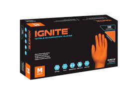 Ignite heavy-duty orange nitrile gloves are perfect for automotive, emergency medical, and manufacturing applications. Ignite gloves are extra thick at 7mil to withstand the toughest challenges of your workday. Featuring enhanced tactile sensitivity and proprietary inch�Max-Grip inch� texture technology allows you to maintain maximum finger dexterity without sacrificing protection. Features Material: Nitrile (100% Latex-Free) Type: Non Sterile Glove Design ; Feature: Ambidextrous and Max Grip Textured Cuff: Beaded Usage: For Single Use Only Colour: Orange Thickness: 7.0 mil