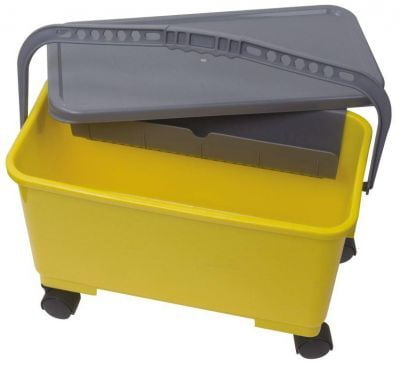 Indestructible soft-walled 6 gallon bucket Accommodates washers up to 18" long Convenient roll-around casters, drain-sieve and lid sold separately