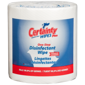 Our Certainty Disinfectant Wipes are designed to combat germs, viruses and fungi found on all hard, non-porous surfaces. They quickly remove dirt and soil from all touch points while promoting a healthy environment and preventing the risk of cross contamination. Ideal for high traffic facilities such as fitness centers, offices, grocery stores, and more.Fragrance-free and alcohol-free Kills 99.9% of common germs that may cause illness Sanitizes and deodorizes in 60 seconds Kills bacteria and viruses DIN registered with Health Canada Large wipe count reduces cost Premium fabric quickly removes dirt and soil.