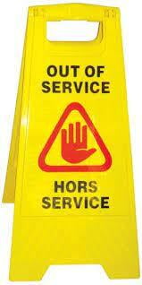 Yellow sign with black and red message attracts immediate attention Bilingual English/French Rugged, durable and portable Folds flat for space saving Dimensions: 12" W x 24" H