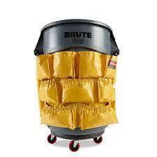 Fits 28 and 40 gallon square containers and 32 and 44 gallon round containers. Holds quart spray bottles, paper towels, sponges, brushes and more. Rubbermaid puts your cleaning supplies on wheels to provide an economical alternative to a cleaning cart.