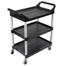 The Rubbermaid Commercial Utility Cart is a versatile, durable service cart able to perform a wide variety of tasks. This rolling utility cart can support up to 200 lbs. and features easy-to-clean smooth surfaces, 4" swivel casters for easy mobility, and user-friendly easy-to-grip handles.