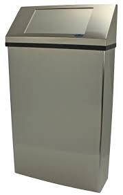 Wall mounted to conserve floor space, stainless steel type 304 no. 4 finish. All steel construction with spring loaded door offers maximum fire protection. 77 liters, 20 gal. capacity
