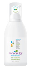 The 550mL size foaming alcohol free hand sanitizer is effective at killing 99.9% of common, harmful germs, bacteria and fungi without drying your skin. Soapopular hand sanitizer is fast drying, non-stinging, and will leave your hands fresh and clean with no sticky residue! This ideal size has a controlled foaming dispenser giving you 1000 applications per bottle and is great for use in the home, office, workplace, cottage, classroom, clinic, spa/gym, RV and wherever you may come in contact with harmful germs. No water or towels needed. Alcohol Free -Non-drying to the skin Rinse Free Formula - No soap, water, or towels needed Non-Irritating and Non-Toxic - Gentle to skin No Sticky Residue Antiseptic - Helps prevent infections in minor abrasions Hypoallergenic Non-FlammableApplications:1000 Directions: Apply a thumbnail size amount on palms and rub hands thoroughly until dry. Children should be supervised by an adult when using this product. No water or rinsing necessary. Active Ingredients:Benzalkonium Chloride inch�. 0.15%