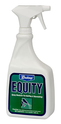Equity is a ready-to-use spray restorer designed to deep clean your floor finish by lifting embedded soils to the surface that are removed by the floor pad. Equity removes black heel marks, tar, scuffs, etc. without being aggressive on floor finish. Its special blend of acrylic, urethane and polyethylene builds gloss, repairs surface damage and creates a hard, protective coating that improves durability and provides slip-resistance. Equity may be easily stripped or coated over with fresh floor finish.